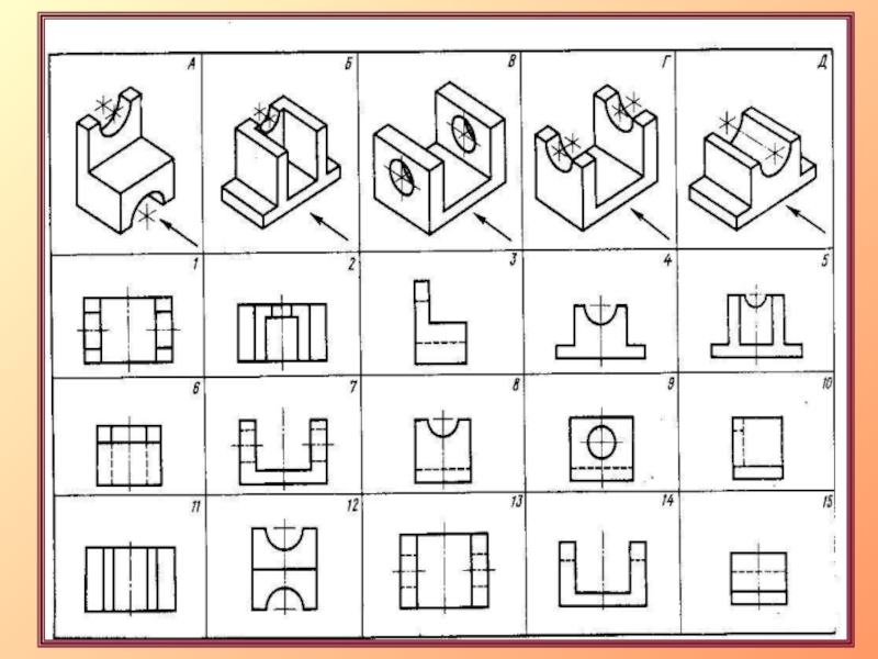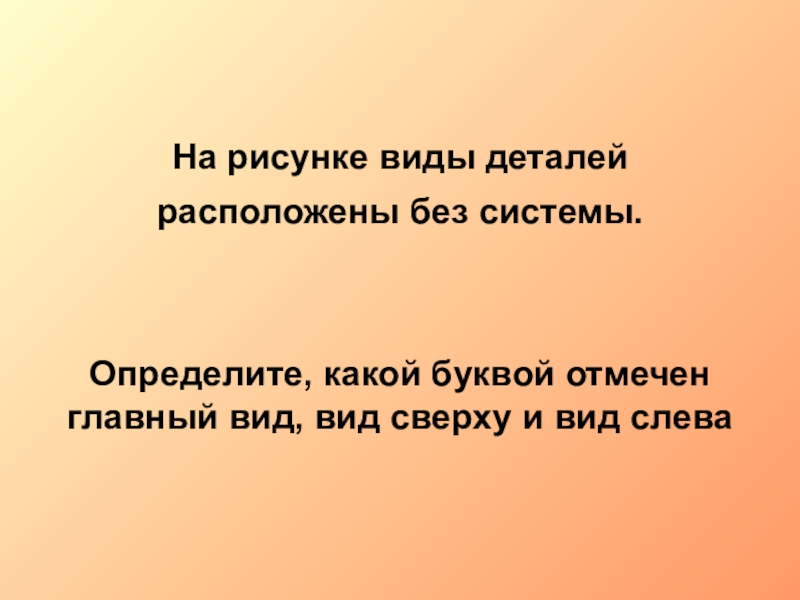 Слайд 26 На рисунке виды деталей расположены без системы. Определите, какой буквой отмечен