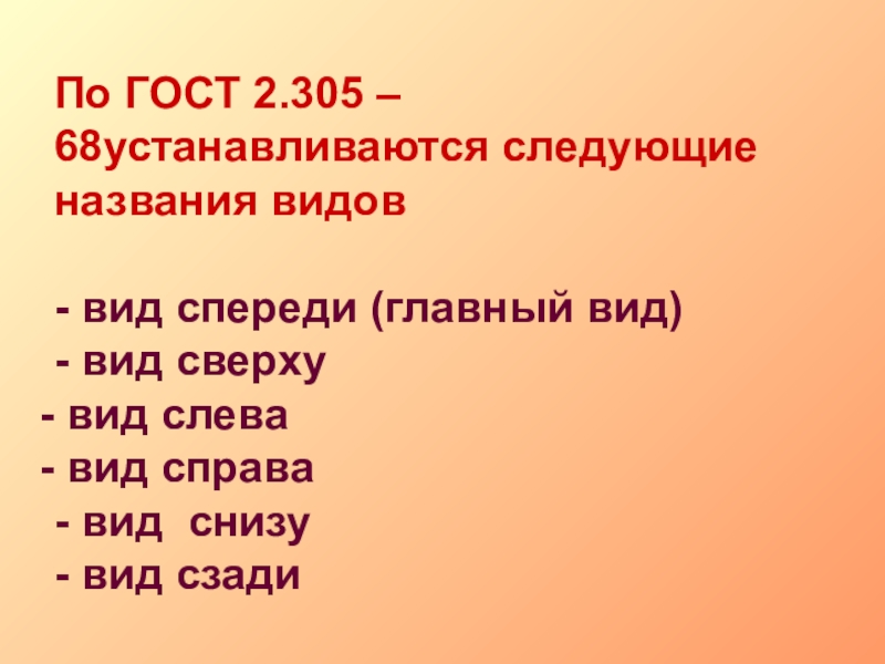Слайд 5По ГОСТ 2.305 – 68устанавливаются следующие названия видов