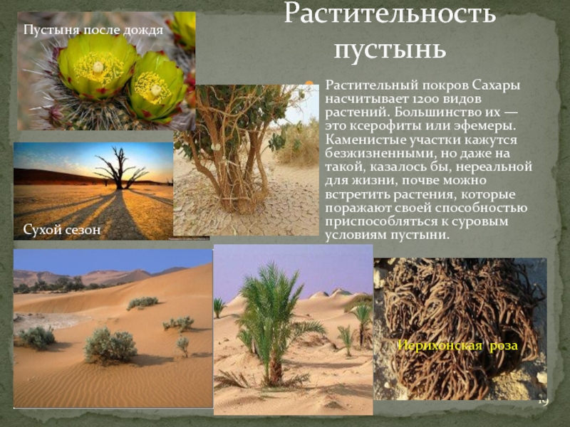 Наибольшую территорию занимает в северном полушарии Господствуют сухие тропические В.М.;