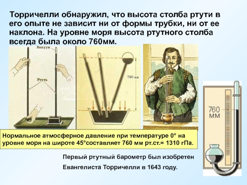 уровне моря на широте 45°составляет 760 мм рт.ст.= 1310 гПа.