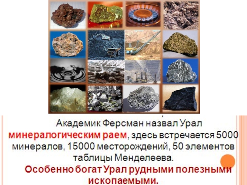 5.Какие природные богатства Урала являются главными? (полезные ископаемые – руды)