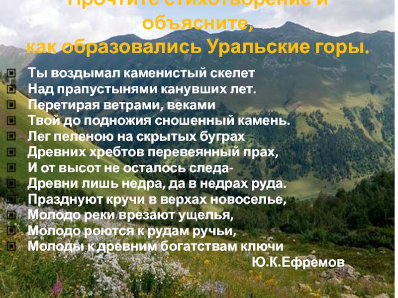 Слайд 12О каком рельефообразующем факторе на Урале идет речь? Что является причиной