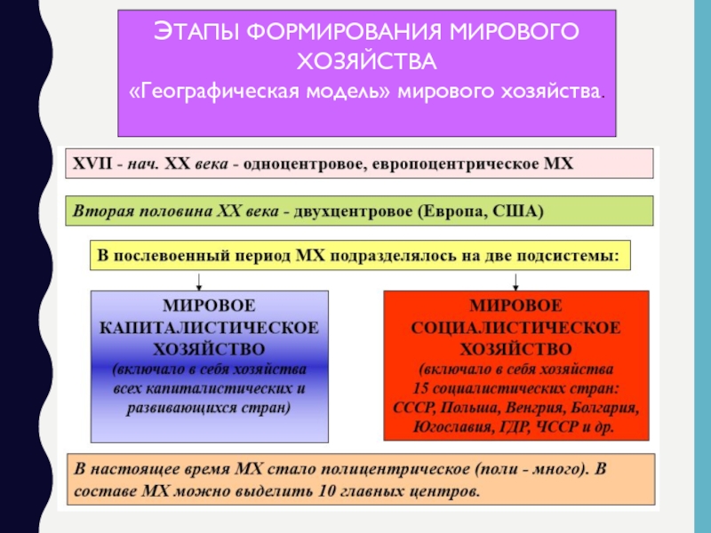 ЭТАПЫ ФОРМИРОВАНИЯ МИРОВОГО ХОЗЯЙСТВА«Географическая модель» мирового хозяйства.