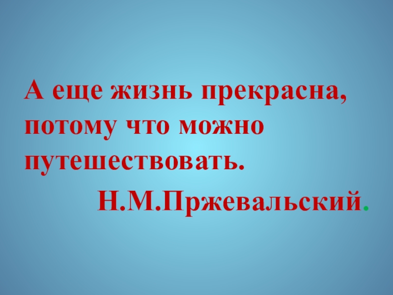 А еще жизнь прекрасна, потому что можно путешествовать.Н.М.Пржевальский.