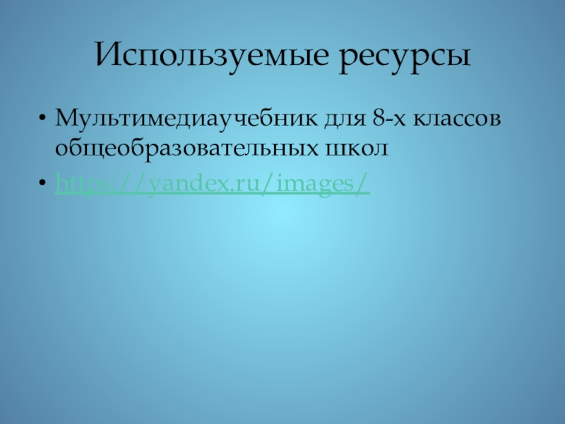 Используемые ресурсыМультимедиаучебник для 8-х классов общеобразовательных школhttps://yandex.ru/images/