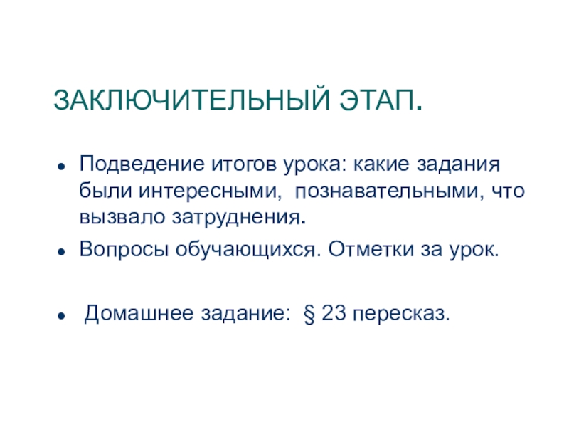 Слайд 13ЗАКЛЮЧИТЕЛЬНЫЙ ЭТАП.