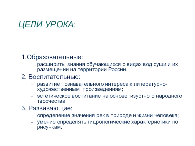 Раздел «ВНУТРЕННИЕ ВОДЫ РОССИИ»