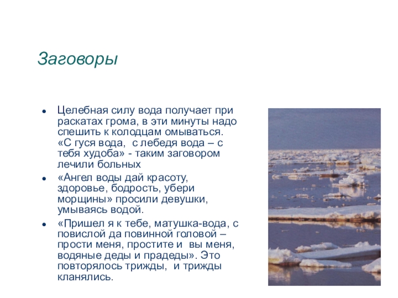 «Пришел я к тебе, матушка-вода, с повислой да повинной головой – прости меня, простите и вы меня, водяные деды и прадеды». Это повторялось трижды, и трижды кланялись.