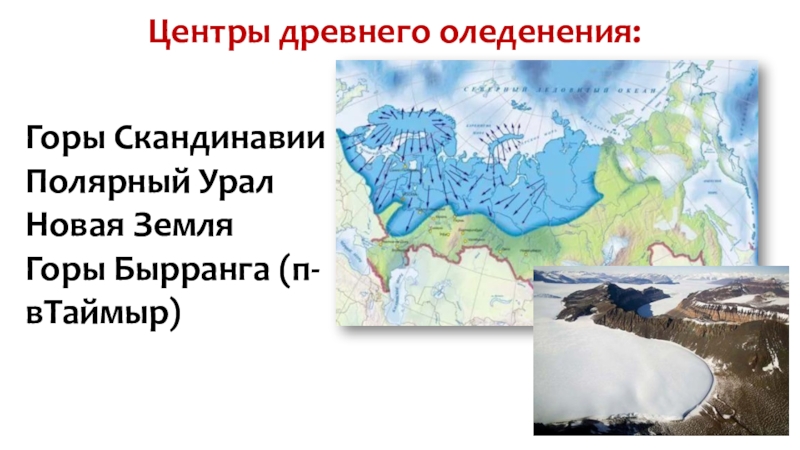 Центры древнего оледенения:Горы СкандинавииПолярный УралНовая ЗемляГоры Бырранга (п-вТаймыр)