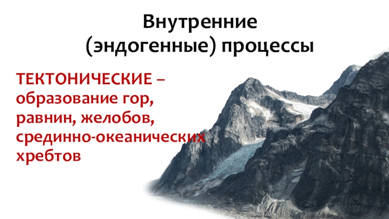 Внутренние  (эндогенные) процессыТЕКТОНИЧЕСКИЕ – образование гор, равнин, желобов, срединно-океанических хребтов