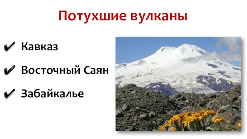 Потухшие вулканыКавказВосточный СаянЗабайкалье