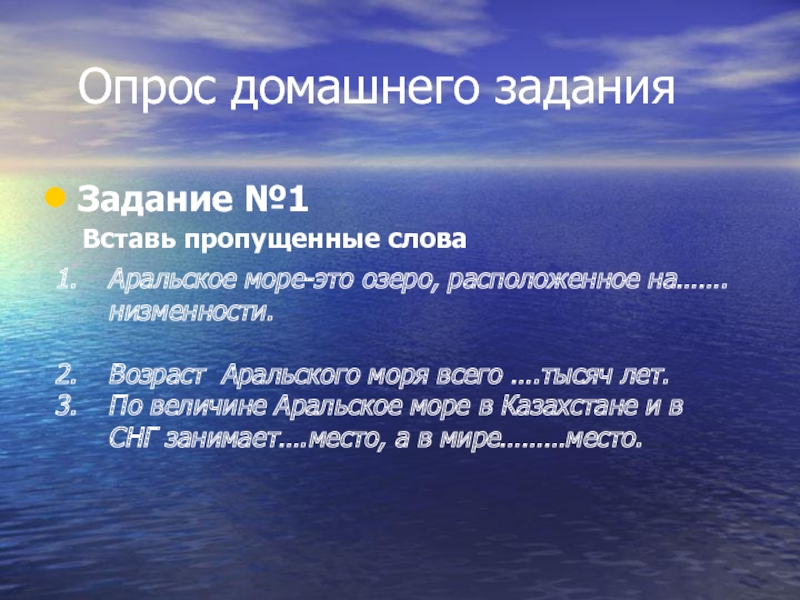 По величине Аральское море в Казахстане и в СНГ занимает….место, а в мире………место.