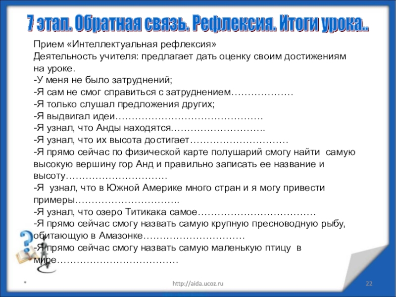 Способствовать пониманию необходимости интеллектуальных усилий для