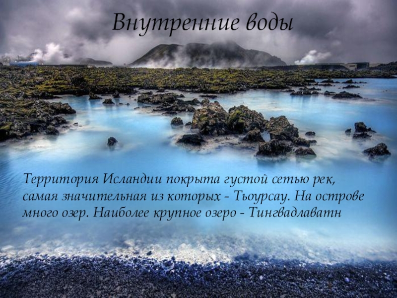 Слайд 6Территория Исландии покрыта густой сетью рек, самая значительная из которых -