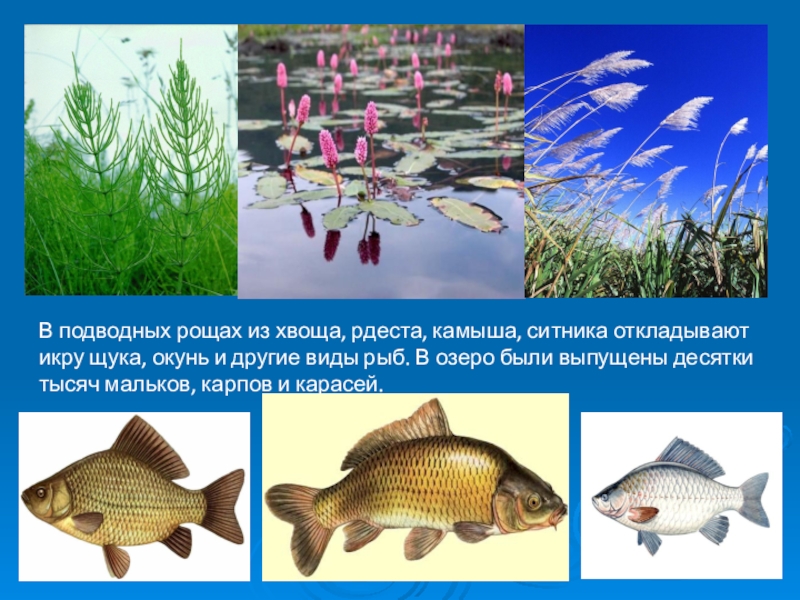 В подводных рощах из хвоща, рдеста, камыша, ситника откладывают икру щука,