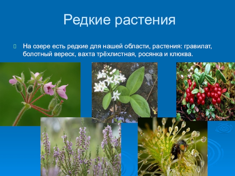 болотный вереск, вахта трёхлистная, росянка и клюква.