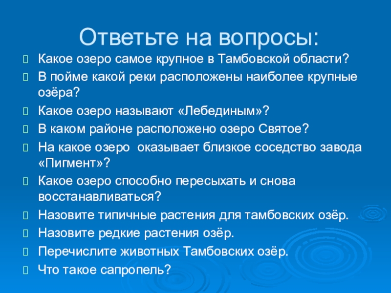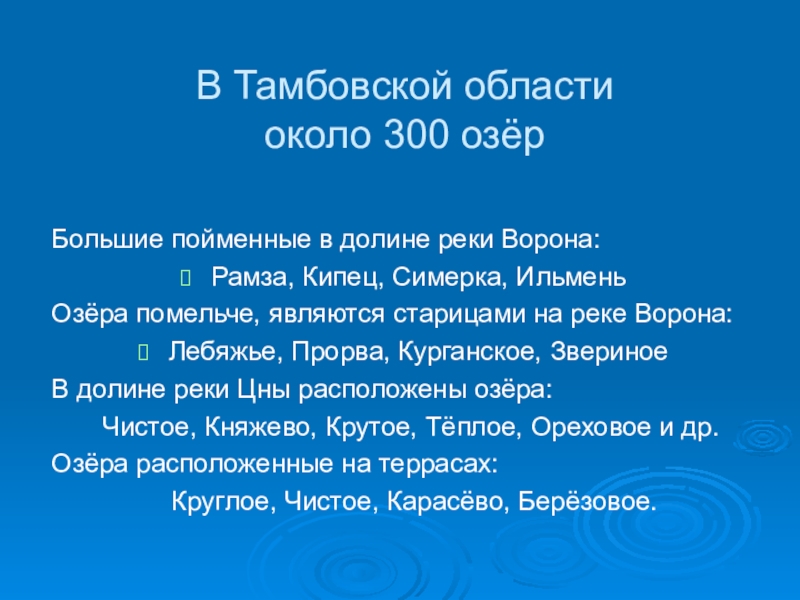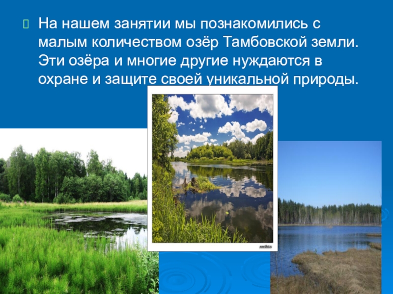 На нашем занятии мы познакомились с малым количеством озёр Тамбовской земли.