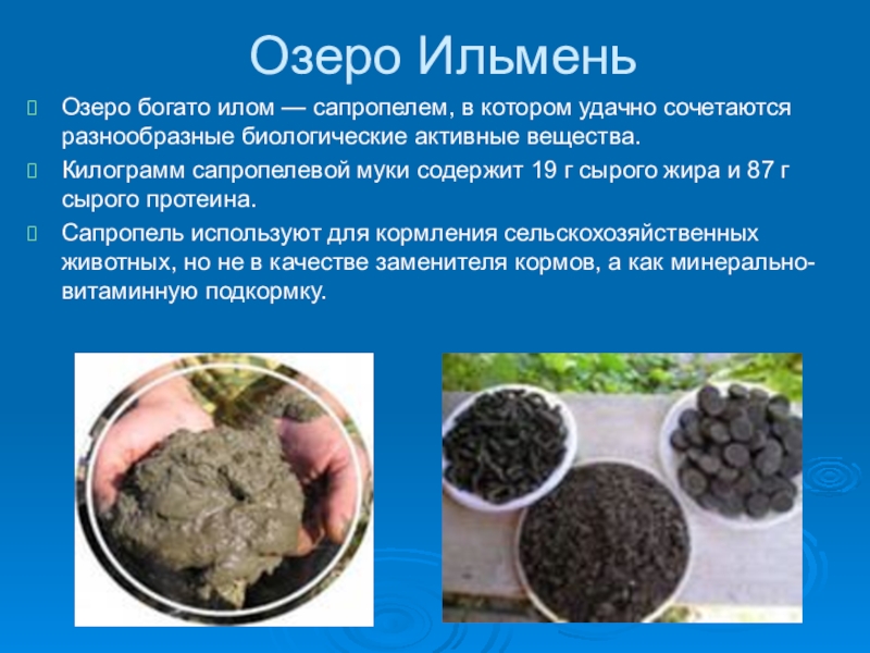 Сапропель используют для кормления сельскохозяйственных животных, но не в качестве заменителя кормов, а как минерально-витаминную подкормку.