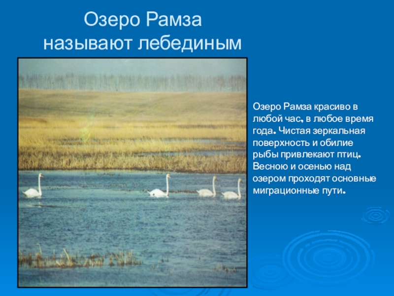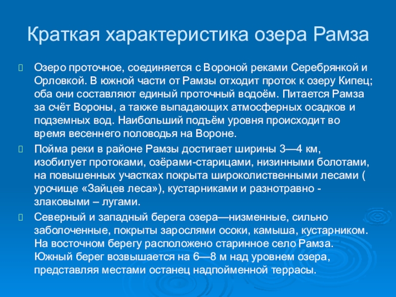 Слайд 5Озеро Рамза расположено в пойме реки Ворона на юге Кирсановского района