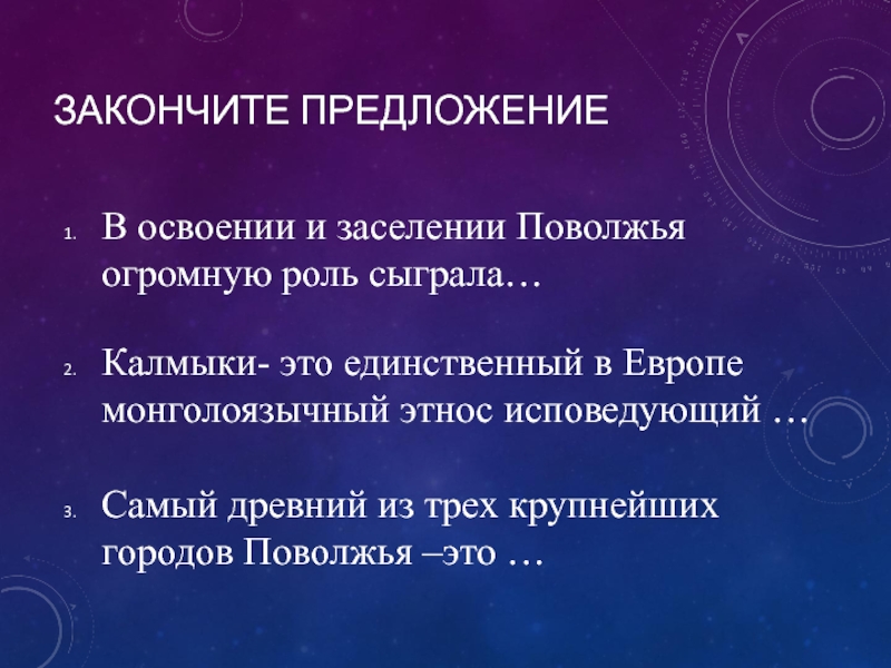 Изучить основные аспекты Поволжья: освоение территории и население