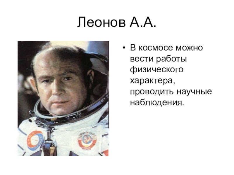 Леонов А.А.В космосе можно вести работы физического характера, проводить научные наблюдения.