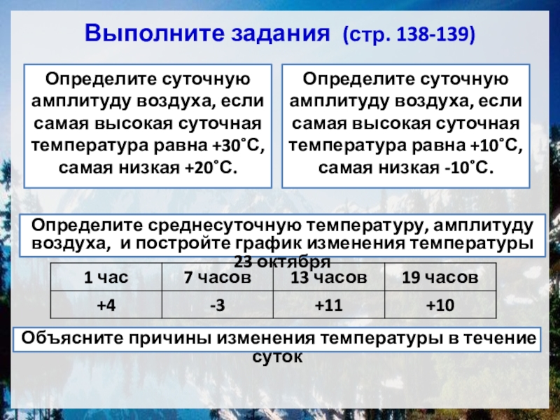 Определите среднесуточную температуру, амплитуду воздуха, и постройте график изменения температуры 23 октября