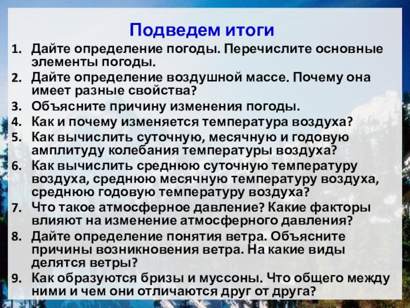Если воздух длительное время находится над какой-либо территорией – он приобретает ее свойства