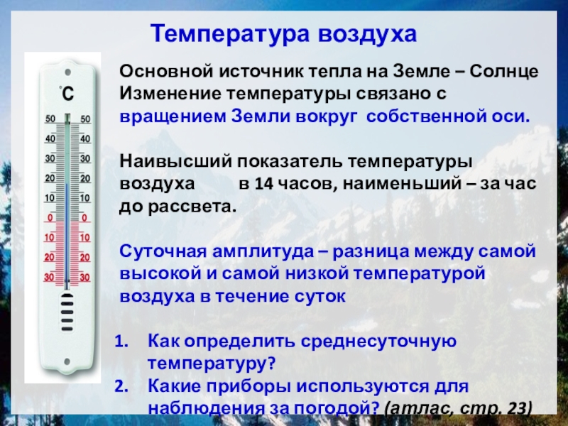 Определите суточную амплитуду воздуха, если самая высокая суточная температура равна +10˚С, самая низкая -10˚С.