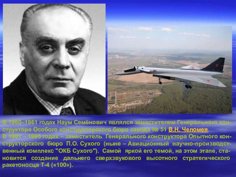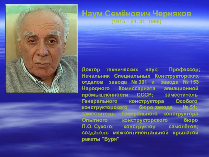Доктор технических наук; Профессор; Начальник Специальных Конструкторских отделов завода № 301 и завода № 153 Народного Комиссариата авиационной промышленности СССР; заместитель Генерального конструктора Особого конструкторского бюро завода № 51; заместитель Генерального конструктора Опытного конструкторского бюро П.О. Сухого; конструктор самолётов; создатель межконтинентальной крылатой ракеты "Буря"