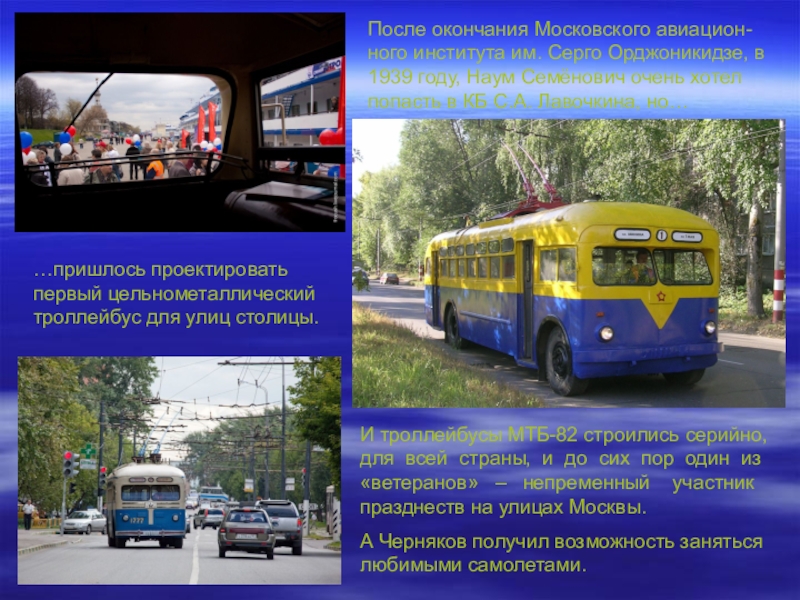 И троллейбусы МТБ-82 строились серийно, для всей страны, и до сих пор один из «ветеранов» – непременный участник празднеств на улицах Москвы.