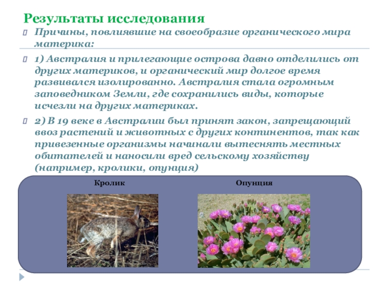2) В 19 веке в Австралии был принят закон, запрещающий ввоз растений и животных с других континентов, так как привезенные организмы начинали вытеснять местных обитателей и наносили вред сельскому хозяйству (например, кролики, опунция)