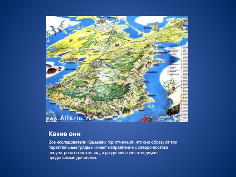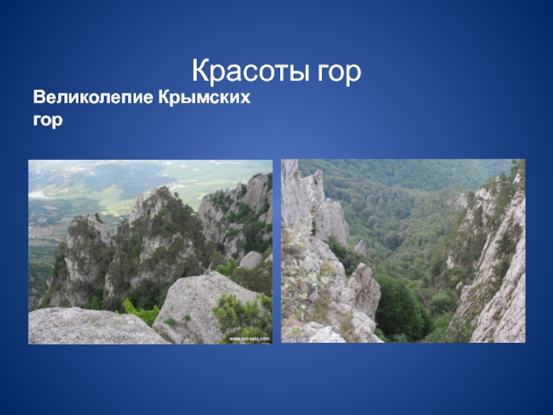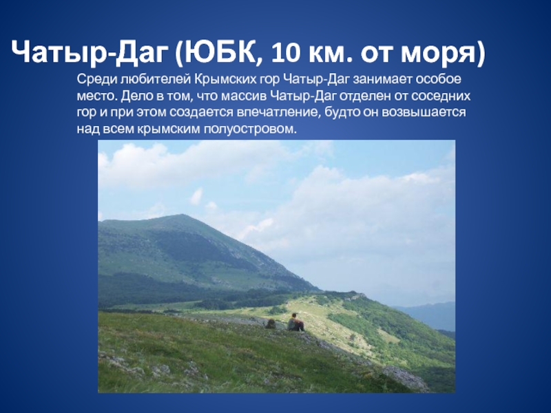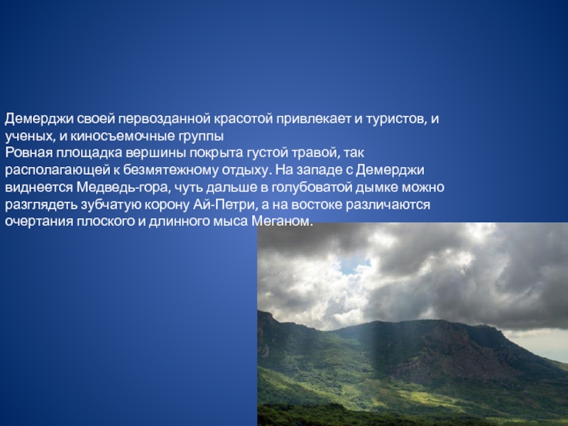 На восточной окраине Крыма находится знаменитая среди туристов гора Демерджи, склоны которой усеяны причудливыми природными каменными изваяниями, немного напоминающими не то животный, не то людей, но больше все же смахивающие на башни и колонны