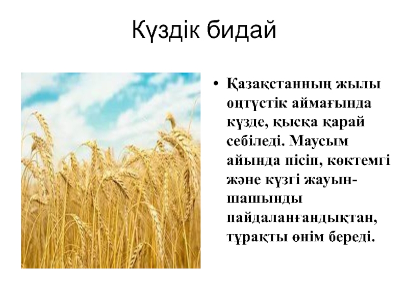 Слайд 10Бидай- астық тұқымдасына жататын маңызды дәнді дақыл