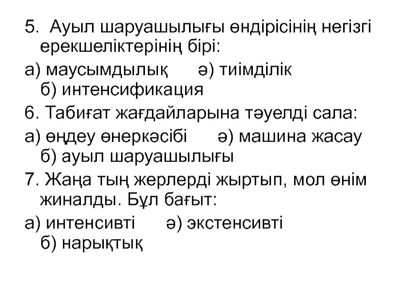Слайд 25. Ауыл шаруашылығы өндірісінің негізгі ерекшеліктерінің бірі:
