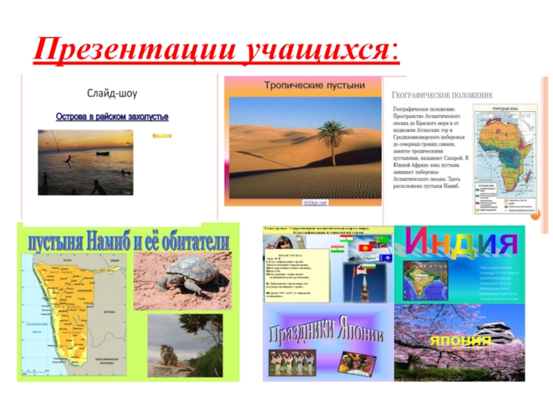 Это сайт презентаций, где можно хранить и обмениваться своими презентациями, докладами, проектами, шаблонами в формате PowerPoint с другими пользователями. Мы помогаем школьникам, студентам, учителям, преподавателям хранить и обмениваться учебными материалами.