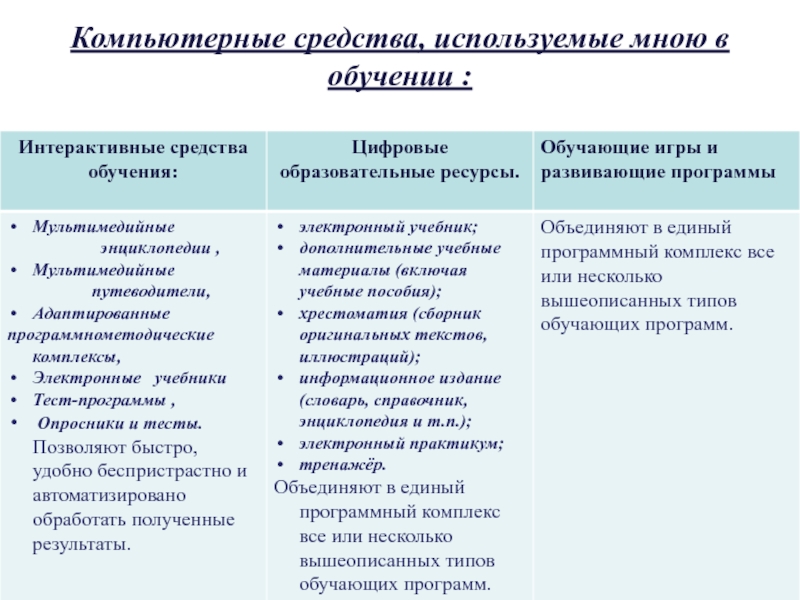 4. Ознакомление с видами компьютерных программ, применяемых мною на моих уроках;