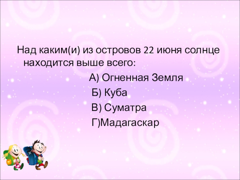 Над каким(и) из островов 22 июня солнце находится выше всего: