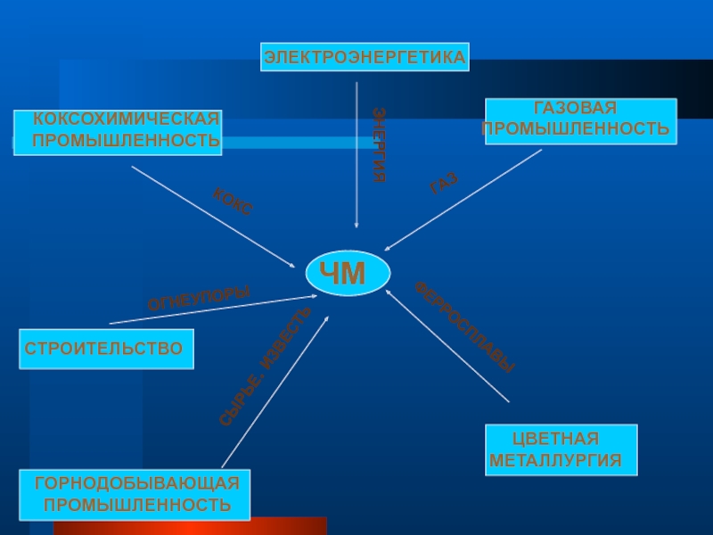 ЧМГАЗОВАЯ ПРОМЫШЛЕННОСТЬЦВЕТНАЯ МЕТАЛЛУРГИЯКОКСОХИМИЧЕСКАЯ ПРОМЫШЛЕННОСТЬСТРОИТЕЛЬСТВОЭЛЕКТРОЭНЕРГЕТИКАГОРНОДОБЫВАЮЩАЯ ПРОМЫШЛЕННОСТЬ