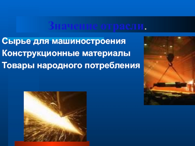 Значение отрасли.Сырье для машиностроенияКонструкционные материалыТовары народного потребления