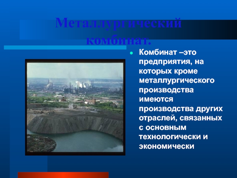 Комбинат –это предприятия, на которых кроме металлургического производства имеются производства