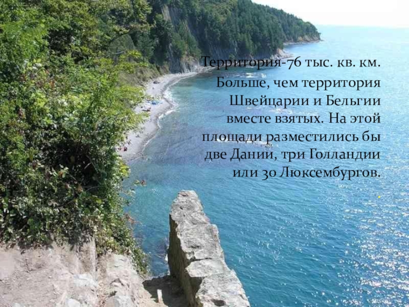 Из общей протяжённости границы в 1540 километров — 740 километров проходит вдоль моря. Наибольшая протяженность края с севера на юг — 327 км и с запада на восток — 360 км.