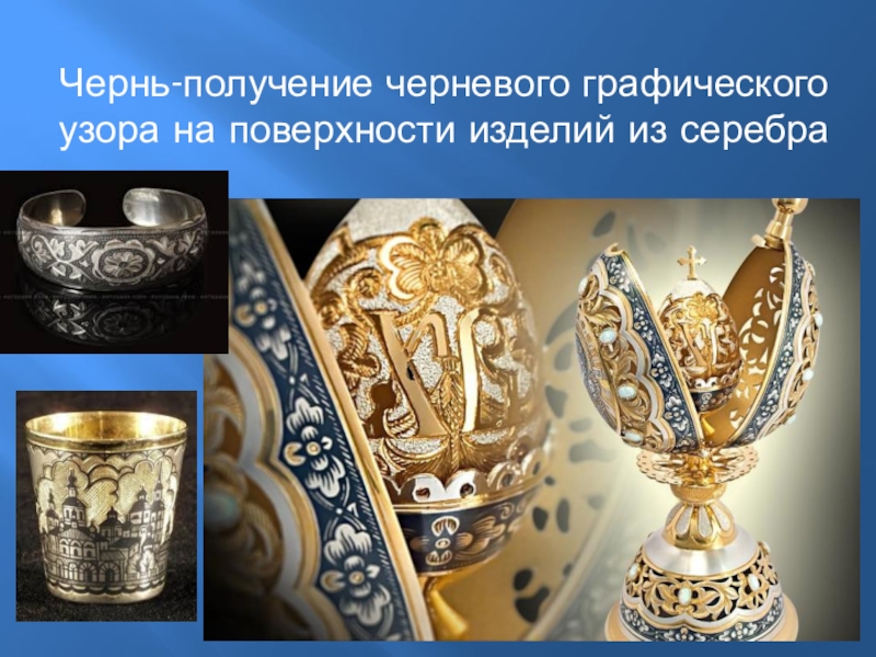 Слайд 7Чернь-получение черневого графического узора на поверхности изделий из серебра