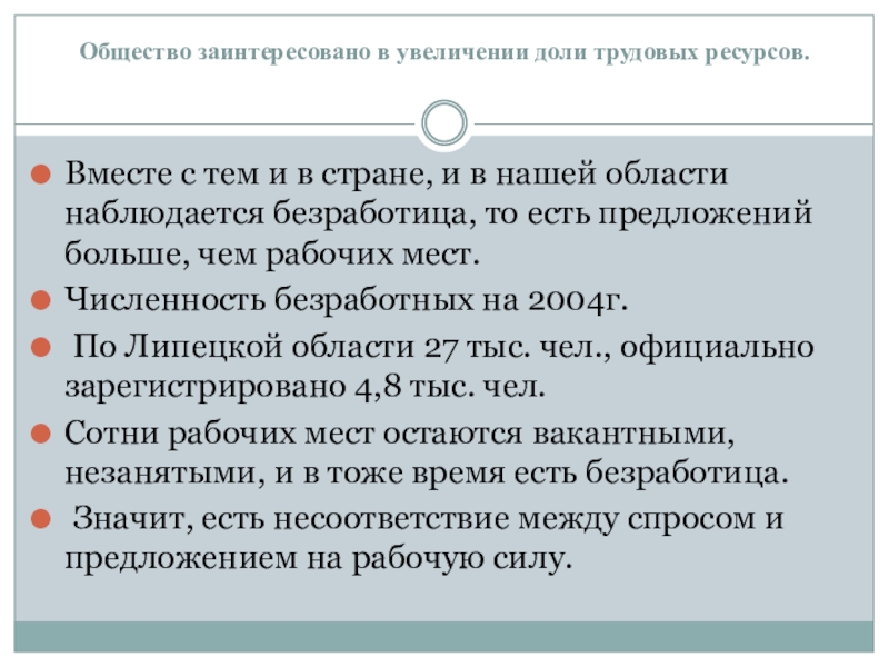 стране, и в нашей области наблюдается безработица, то есть предложений больше, чем рабочих мест.