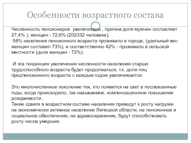 Слайд 9Особенности возрастного состава