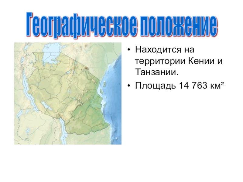 Находится на территории Кении и Танзании.Площадь 14 763 км² Географическое положение