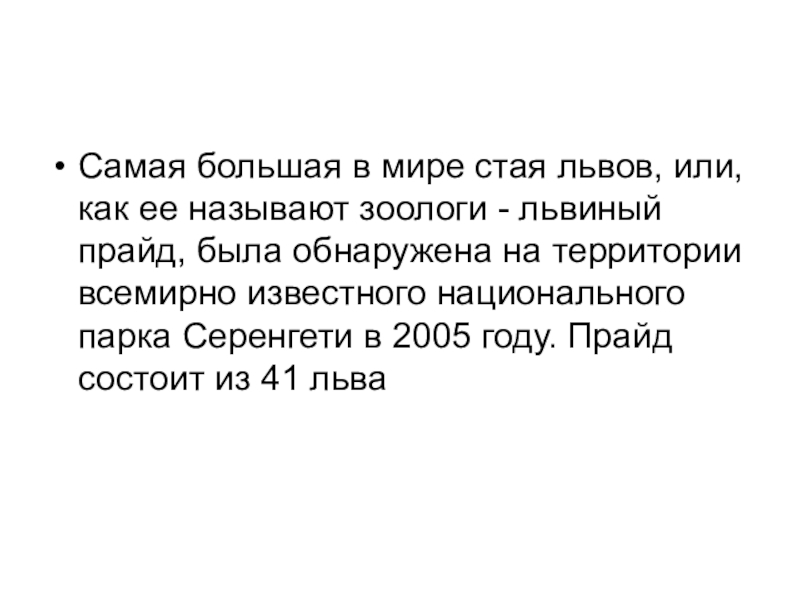 - львиный прайд, была обнаружена на территории всемирно известного национального парка Серенгети в 2005 году. Прайд состоит из 41 льва