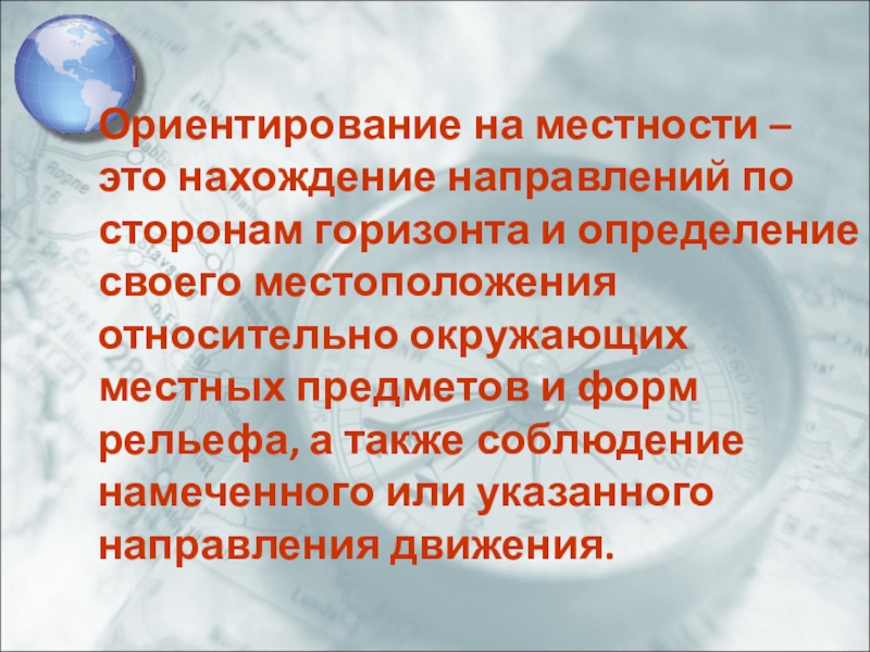 Слайд 2Ориентирование на местности – это нахождение направлений по сторонам горизонта и