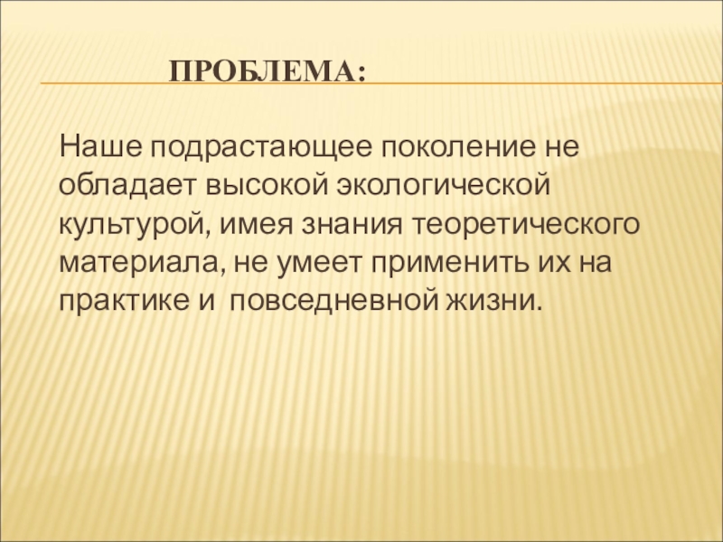 Наше подрастающее поколение не обладает высокой экологической культурой, имея знания теоретического материала, не умеет применить их на практике и повседневной жизни.