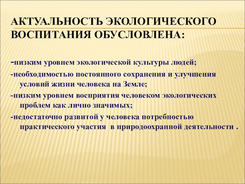 АКТУАЛЬНОСТЬ ЭКОЛОГИЧЕСКОГО ВОСПИТАНИЯ ОБУСЛОВЛЕНА: