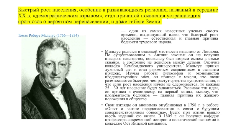 — один из самых известных ученых своего времени, выдвинувший идею, что быстрый рост населения — естественная и главная причина бедности трудового народа.